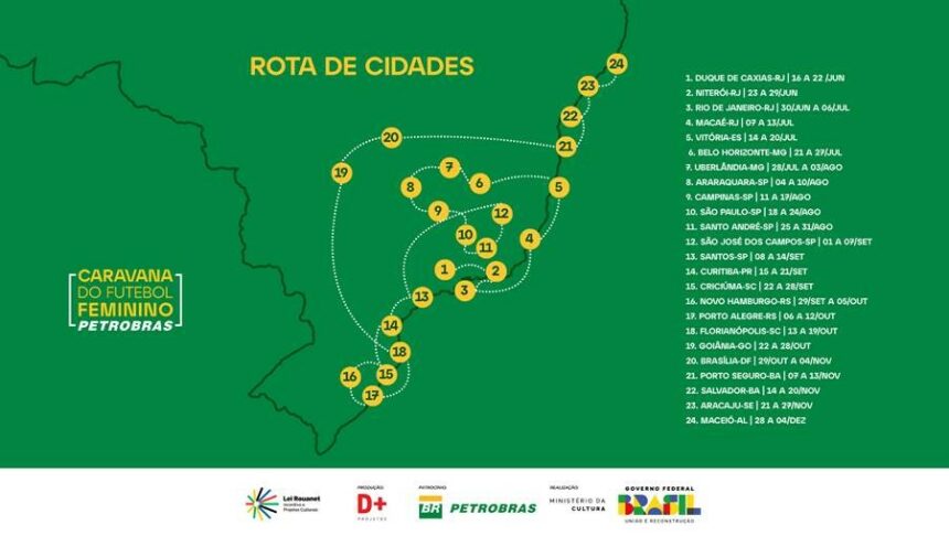 A Petrobras, gigante brasileira e uma das maiores incentivadoras do esporte no país, está trazendo para Porto Seguro, na Bahia, a “Caravana do Futebol Feminino Petrobras”. De 07 a 13 de novembro, a Praça da Família no Baianão se transformará em um palco de celebração e incentivo para a modalidade que só cresce no Brasil e no mundo.