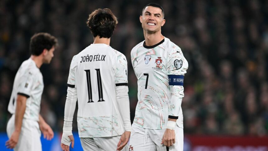O protagonista (e anti-herói) da noite foi, sem dúvida, Cristiano Ronaldo. O craque português teve uma “noite de fúria”, para usar um termo que ecoa a intensidade do futebol. Após um primeiro tempo já complicado para Portugal, que viu a Irlanda abrir uma importante vantagem de dois gols, a situação piorou drasticamente. No início da segunda etapa, Cristiano Ronaldo se envolveu em uma confusão, desferindo uma cotovelada nas costas de um adversário, sem a bola em disputa. A revisão do VAR confirmou a infração, e o árbitro não hesitou em mostrar o cartão vermelho. A reação do camisa 7 foi emblemática: palmas irônicas e o gesto de “choro” com as mãos, uma imagem que certamente entrará para o rol dos momentos polêmicos do astro.
